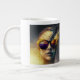 Ein digitales surrealistisches Bild einer Frau mit brennender Brille. Jumbo-Tasse