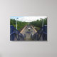 Capture the industrial charm of East Lancashire with this striking high-angle photograph of the Burnley Rose Grove Railway Station. Framed by bold blue pedestrian bridge railings, the image draws the eye down a long, symmetrical platform nestled between lush green embankments. Perfect for train enthusiasts, commuters with a soft spot for local history, or those looking for a modern architectural landscape for their home or office.