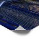 Capture the industrial charm of East Lancashire with this striking high-angle photograph of the Burnley Rose Grove Railway Station. Framed by bold blue pedestrian bridge railings, the image draws the eye down a long, symmetrical platform nestled between lush green embankments. Perfect for train enthusiasts, commuters with a soft spot for local history, or those looking for a modern architectural landscape for their home or office.