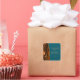 Dieser moderne Hochzeitsaufkleber ist mit einem verbrannten Orangen-Aquarell-Geodedesign bestickt mit Imitaten Gold-Glitzer. Anpassen Sie den goldfarbenen Text einfach auf einem aquamarinen blauen Hintergrund, mit den Namen der Braut und des Bräutigams in handschriftlicher Kalligraphie über einen großen aquamarinen Ampersand.