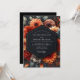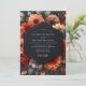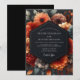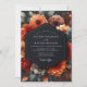 Embrace a moody and romantic atmosphere with this stunning design. A lush bouquet of burnt orange dahlias, rust-toned chrysanthemums, and muted teal blossoms bursts from a deep charcoal background. The rich, painterly style evokes the drama of a baroque still-life, perfect for a sophisticated autumn event.