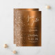 Diese elegante moderne Hochzeit bewahrt die Dattelkarte mit einem verbrannten, orangefarbenen Metallhintergrund, der mit Imitaten mit Diamant-Glitzer verziert ist. Der anpassbare Text kombiniert weiße Skripte und serifenlose Schriftart. Die Rückseite wiederholt das verbrannte orange gebürstetes Metall und Glitzer.