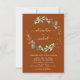 Eukalyptus Greenery Sukkulente Botanische Wasserfarbenfrühlingseinladung auf Burnt Orange Hintergrund - beinhaltet eine wunderschöne und elegante Schriftzeichen mit modernen botanischen Blätter und Grün für die besondere Hochzeitstagsfeier.