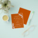 Bitte beachten Sie, dass diese Einladung auf Flyer Papier und sehr dünn ist. Umschläge sind nicht enthalten. Für dickere Einladungen (gleiche Gestaltung) besuchen Sie bitte unseren Shop. Orangefarbener Hintergrund, mit Eukalyptusstemmen dekoriert, mit Sprigs. Personalisieren und hinzufügen Sie Ihre Namen und die Details. Zurück: staubiger orangefarbener Hintergrund.