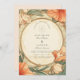 Dieses romantische Design besticht durch kühn verbrannte orange und weiche beige Blumen, die um einen runden Rahmrahmen fegen. Mit reichen, fließenden Jugendstil-Linien und einer Touch Vintagen Charmes erinnert diese Einladung an Wärme, Eleganz und natürliche Schönheit - perfekt für eine Herbst- oder Gartenhochzeit.