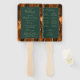 Dieser elegante, moderne Hochzeitsfan besticht durch einen verbrannten, orangefarbenen Hintergrund mit vergoldetem Imitat-Glitzer. Der Text erscheint in goldfarbener Handschrift und in kopperplate-Schriftart auf einem dunkelgrünen Rechteck.