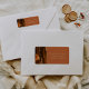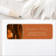 Die links Kulisse dieses eleganten, modernen und mit Imitaten bestickten Retourenschilds mit einem farbenfrohen, orangefarbenen Aquarellrand. Der anpassbare Text kombiniert eine helle, goldfarbene Handschrift mit Kupferplatte auf einem verbrannten orangen Hintergrund.