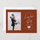 Burnt Orange Rustic Terracotta Herz Liebe Typografie Foto Hochzeit Speichern Sie das Datum Ankündigung Postkarte
