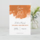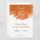 Im Design befindet sich eine künstlerisch verbrannte orangefarbene Farbuhr. Das Design ist modern und sauber und strahlt Farbe für Ihren besonderen Tag aus.