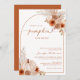 Elegante Baby-Dusche verbrannte orange Einladung mit Aquarellblumen im Herbst und cremefarbenem Kürbisdesign.