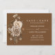 Elegante, rettend Karten mit blumengeschmückten Illustrationen in Elfenbein- und Brauntönen. Weißer Text auf dunkelorangefarbenem Hintergrund.