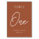 Moderne Tischnummern erheben Ihr Dekor an einem Hochzeitstisch. Das Design besticht durch einen eleganten, weißen Script-Schriftart auf einem verbrannten orangen Erdton, der sich perfekt für eine Hochzeit im Herbst oder ein Bankettereignis eignet. Bestellen Sie jede Tischnummer aus der Sammlung oder bearbeiten Sie diese Karte für jede benötigte Nummer. Das Design ist beidseitig bedruckt.