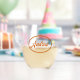 Ein trendiges Hochzeitsgeschenk für Ihren Trauzeuge! Stemloses Weinglas, das den Namen Ihres Trauzeugen in einer trendigen, verbrannten, orangefarbenen Farbe zeigt, in einem stilisierten Drehbuch gedruckt und umgeben von einem ovalen Design derselben Farbe. Personalisieren Sie Ihr Weinglas, indem Sie den Namen durch den Namen des Trauzeugen ersetzen.