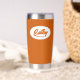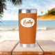 Verschenken Sie Ihre Hochzeitsjury mit diesem trendigen und personalisierten, rostfreien Edelstahl, Thermalwäscher mit ihrem Namen in stilisierter Schrift in einem weißen ovalen Design. Hintergrundfarbe und Skript sind eine verbrannte orange Farbe. Personalisieren Sie Ihren Wärmeleiter, indem Sie den Namen der Brautjungfrau mit dem gewünschten Namen bearbeiten und ersetzen. Erhältlich in vielen beliebten Hochzeitsfarben.