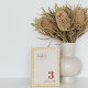 Hochzeitskarten mit moderner orangefarbener Schrift und "Tischnummer" im modernen Kalligraphie-Schriftart. Das Design hat einen weißen Hintergrund mit zarten schwarzen Flecken für einen einzigartigen Look.