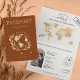 Modern Boho World Map Einladung Wedding Destination, wie Pass, mit Ihrem Monogramm. Orangefarbene Hintergrundfarbe