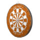 Zweifarbiges Dartboard in verbranntem Orange und Weiß mit zwei Zeilen personalisierten Textes. Brauchen Sie Hilfe beim Design (z.B. in verschiedenen Farben)? E-Mail help@karenchaudesigns.com