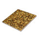 Dieses Produkt wird aus einem texturierten "Terra Cotta" farbigen Mosaik quadratischen Fliesen Muster in den Tönen Gelb, Orange, Rost, Braun und Schwarz in einer zufälligen Form. Die Struktur und die Mischung von warmen Erdtönen in diesem einzigartigen abstrakten Design verleihen ihm einen Blick, der an einen verbrannten englischen Muffin erinnert.
