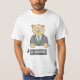 Ein Bild eines beruflichen schauenden Büroangestelltbären, der an der Tastatur auf seinem Schreibtisch an seinem Geschäftssitz sitzt. Der Bär trägt einen grauen Anzug und eine grüne Krawatte.