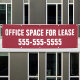 Bürofläche für Lease Sign Banner für kommerzielles Real Anwesen Lease oder Miete in Office Gebäude. Große Wörter und Telefonnummer, um Aufmerksamkeit zu erhalten und leicht aus der Ferne zu sehen. Bearbeiten Sie Text und ändern Sie die Hintergrundfarbe, wenn Sie möchten.