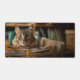 Eine überarbeitete Bürokatze holt beim Einreichen ein.