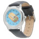 Kinder Edelstahluhr mit schwarzem Lederarmband