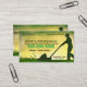 Gartendienstkarte mit grünem Rasenmäher.