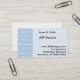 Das blaue Muster (aus Hexagonen, Balken, Dreiecken und Kreisen) wird über die gesamte Karte multipliziert. Links vertikale Marge ist dunkle Farbe, Rest des Musters ist ein schwächerer Hintergrund zu den relevanten Geschäftsinformationen von Name, Business, Kontaktnummern (alle personalisiert).
