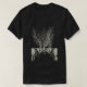 Dies ist ein T - Shirt mit einem invertierten Bild eines Baumes. Die Zweige des Baumes zeigen nach oben und schaffen ein interessantes und einzigartiges Design. Das Bild wird auf einem schwarzen T - Shirt gedruckt.