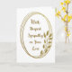 Schicken Sie dem Getöteten mit dieser aufrichtigen Karte Ihr Beileid. Gold aussehende Ovale umgeben die Botschaft des tiefsten Beileids. Unten rechts ist ein einfacher goldfarbener Zweig mit Blätterdach. Perfekt für Ihre geschäftlichen Bedürfnisse von Mitarbeitern, Kunden und Bekannten. Digital geschaffenes Gold-Look.