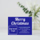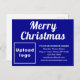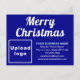 Frohe Weihnachten! Einer der bekanntesten Feiertage des Jahres. Es ist auch eine der besten Jahreszeiten, um Ihr Unternehmen zu werben oder Ihren Markennamen für Kunden oder Kunden zu fördern. Individuell gestaltbare Urlaubspostkarte, die Sie mit Ihrer Firmenmarke und mit Weihnachtsgrüßen versehen können. Passen Sie es an und nutzen Sie es, um Ihre Kunden oder Kunden an diesem Weihnachtsfest zu begrüßen. Sie können es auch als Marketing-Material verwenden, um Ihr Unternehmen zu werben oder Ihren Markennamen zu fördern. Individuell gestaltbare Ferienpostkarte, mit der Sie Markenbewusstsein schaffen können. Urlaubspostkarte für Dezember oder Weihnachten im Juli. Designfarben sind hellblaue und weiße Texte auf blauem Hintergrund. Um diese Postkarte anzupassen, geben Sie Ihren Firmennamen, Ihre Adresse, Telefonnummer, E-Mail, Website oder Social Media-Seite ein und laden Sie Ihr Firmenlogo hoch. Nach dem Eintippen von Texten und dem Hochladen von Logos, bitte Karo des Erscheinungsbildes. Wenn Ihnen das Aussehen gefällt, können Sie jetzt Ihre Bestellung aufgeben. Wenn Sie die Größe ändern und die Texte und das Logo verschieben müssen, um auf diese Postkarte zu passen, wechseln Sie bitte im Design-Tool. Sie können auch den Stil des Schriftartes, die Farbe des Schriftartes und die Hintergrundfarbe im Designwerkzeug ändern. Sie können auch Bilder und Texte auf der Rückseite des Designs hinzufügen. Frohe Weihnachten! Wir wünschen Ihnen mehr Umsatz in dieser Feriensaison.