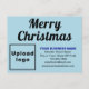 Frohe Weihnachten! Einer der bekanntesten Feiertage des Jahres. Es ist auch eine der besten Jahreszeiten, um Ihr Unternehmen zu werben oder Ihren Markennamen für Kunden oder Kunden zu fördern. Individuell gestaltbare Urlaubspostkarte, die Sie mit Ihrer Firmenmarke und mit Weihnachtsgrüßen versehen können. Passen Sie es an und nutzen Sie es, um Ihre Kunden oder Kunden an diesem Weihnachtsfest zu begrüßen. Sie können es auch als Marketing-Material verwenden, um Ihr Unternehmen zu werben oder Ihren Markennamen zu fördern. Individuell gestaltbare Ferienpostkarte, mit der Sie Markenbewusstsein schaffen können. Urlaubspostkarte für Dezember oder Weihnachten im Juli. Die Designfarben sind schwarz und dunkelblau auf hellblauem Hintergrund. Um diese Postkarte anzupassen, geben Sie Ihren Firmennamen, Ihre Adresse, Telefonnummer, E-Mail, Website oder Social Media-Seite ein und laden Sie Ihr Firmenlogo hoch. Nach dem Eintippen von Texten und dem Hochladen von Logos, bitte Karo des Erscheinungsbildes. Wenn Ihnen das Aussehen gefällt, können Sie jetzt Ihre Bestellung aufgeben. Wenn Sie die Größe ändern und die Texte und das Logo verschieben müssen, um auf diese Postkarte zu passen, wechseln Sie bitte im Design-Tool. Sie können auch den Stil des Schriftartes, die Farbe des Schriftartes und die Hintergrundfarbe im Designwerkzeug ändern. Sie können auch Bilder und Texte auf der Rückseite des Designs hinzufügen. Frohe Weihnachten! Wir wünschen Ihnen mehr Umsatz in dieser Feriensaison.