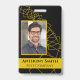 Black and Gold Business ID Abzeichen für Profis. Ideal für Konferenzen oder neue Mitarbeiter, mit Bild, Firmenname oder Firmentitel. Es ist Platz für Ihr Logo in der oberen rechten Ecke, wenn gewünscht.