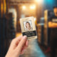Demand attention with this ultra-premium, executive ID badge design. The layout features a striking faux brushed gold texture as the primary background, accented by a sleek black horizontal stripe for key information. This high-contrast, luxurious aesthetic is perfect for creating a powerful, upscale professional image that exudes quality and prestige.
