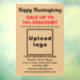Alles Gute zum Erntedankfest! Feiertag in diesem November zu feiern, um für die Segnungen, die wir erhalten danken. Es ist auch einer der Feiertage, um für Ihr Unternehmen zu werben. Anpassbare Fensterklemme mit Erntedank Sale, Ihrem Firmennamen und anderen Informationen. Fensterheber, die Sie als Marketing-Material verwenden können, um mehr Kunden anzuziehen. Anpassen und anzeigen, um mehr Kunden davon zu überzeugen, Ihre Produkte oder Kunden zu kaufen, um Ihre Dienstleistungen zu mögen. Die Designfarben sind schwarz, dunkelbraun und rot auf hellbraunem Hintergrund. Inhalte sind Glückwunsch Thanksgiving Gruß, Verkaufstexte mit Prozent Rabatt, die Sie anbieten, Verkaufstermine, Ihr Firmenname, Logo, Adresse, Telefonnummer, E-Mail und Website oder Ihre Business Social Media-Seite. Bitte Karo des Erscheinungsbildes nach dem Hochladen von Logos und Schriftzeichen. Wenn Ihnen das Aussehen gefällt, können Sie jetzt Ihre Bestellung aufgeben. Wenn Sie das Logo und die Texte ändern und verschieben müssen, um sie auf diese Fensterklemme oder auf die gewünschte Größe und Form zu passen, ändern Sie bitte das Design-Tool. Sie können auch die Hintergrundfarbe, die Farbe des Schriftartes und den Stil des Schriftartes im Designwerkzeug ändern. Alles Gute zum Erntedankfest! Wir wünschen Ihnen mehr Umsatz in diesem Urlaub.