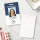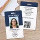 Mit diesem personalisierten Business Identification Abzeichen erstellen Sie ein berufliches Erscheinungsbild. Eine einfache und stilvolle Vorlage mit Ihrem Logo, ID-Foto, Name, Jobtitel und Firmennamen. Der gesamte Text kann angepasst werden, sodass Sie die gewollt Informationen einschließen können. Kontaktinformationen liegen auf der Rückseite, sowie weitere Informationen und ein QR-Code. Farben: sehr dunkelblau, grau und weiß. Vertikales Format