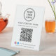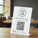 Upgrade your counter, reception desk, or checkout area with this custom QR code pedestal sign, designed to help customers instantly connect with your business. Featuring a clean white background, modern typography, and space for your logo, business name, and Facebook and Instagram social media handle, this professional tabletop sign fits seamlessly into retail stores, salons, studios, cafés, clinics, offices, and service-based businesses. With one quick scan, customers can view your services, pricing, menu, or website -- no typing required. Zazzle automatically generates the QR code from the website address you enter, making setup fast and effortless. The sturdy pedestal base keeps the sign upright and highly visible, while the minimalist design reinforces your brand and creates a polished, contactless experience. Perfect for promoting your website, encouraging social media follows, and streamlining customer communication, this personalized QR code sign is both functional and stylish.