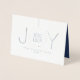 Senden Sie einfach stilvolle Urlaubswünsche an Kunden, Kunden und Geschäftspartner mit eleganten, firmeneigenen Real-Folie-Urlaubskarten. Alle Formulierungen auf dieser gefalteten Kartenvorlage sind einfach zu personalisieren. Die Weihnachtsschmuck, das Logo und der Text auf der Vorderseite sind mit echter metallischer Silberfolie auf einem weißen Grundhintergrund bedruckt. (Das hochgeladene Logo sollte schwarz mit weißem oder transparentem Hintergrund sein.) Das moderne minimalistische marinalblaue und weiße Design besticht durch ein elegantes JOY-Ornament und eine einfache klassische Typografie. Bitte beachten Sie, dass das Interieur farbig ist, nicht metallische Folie. Diese Karten sind sowohl in kleinen als auch in großen Mengen erhältlich und eignen sich sowohl für Kleinunternehmer als auch für Firmenprofis. Geschäftsreisende, Familien und Freunde werden den raffinierten Luxus dieser personalisierten Urlaubskarten Liebe geben. Frohe Festtage!