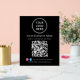 Elevate your counter or reception area with this custom QR code acrylic tabletop sign, designed to make connecting with your business fast, easy, and professional. Featuring a sleek black acrylic panel with an optional modern wood base and simple white lettering, this sign highlights your logo, business name, a scannable QR code, and your Facebook and Instagram social media handle in a clean, minimalist layout that complements any space. Perfect for restaurants, cafés, salons, boutiques, offices, clinics, hotels, and events, this tabletop acrylic sign allows customers to instantly view your services, prices, menus, booking page, or website with a single scan. The premium acrylic material offers a polished, high-end look while remaining durable and easy to display on counters, desks, and tables.