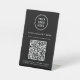 Create a seamless, modern customer experience with this custom QR code black pedestal sign, designed to showcase your business information in a clean, professional way. Featuring simple white lettering, your logo and company name, and a scannable QR code, this tabletop sign is ideal for retail counters, salons, clinics, cafés, studios, offices, and service-based businesses. With a single scan, customers can instantly view your services, pricing, menu, or website -- no typing or searching required. Zazzle automatically generates the QR code from the website address you provide, making customization quick and effortless. The sturdy pedestal base keeps the sign upright and easy to read, while the neutral design complements any décor and reinforces your brand presence. Perfect for contactless communication and in-store marketing, this personalized QR code sign helps increase website traffic, streamline customer interactions, and present your business with a polished, professional look.