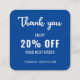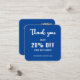 Eine minimalistisch blaue und weiße Discount-Karte mit QR-Code für ein berufliches Unternehmen, das als Werbemittel zur Kundenbindung eingesetzt werden kann. Sie können den Schriftart, die Farbe des Schriftartes, die Größe des Schriftartes, den Abstand der Buchstaben, die Hintergrundfarbe und die Farbe der Dankeschön-Grafik mit dem Design-Tool ändern. Sie können auch die Social Media Icons so ändern, dass sie für Ihr Unternehmen relevant sind. Das schlichte, moderne und elegante Design ist Ihr persönlicher Wunsch.