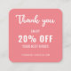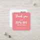Eine minimalistisch rosa, weiße und schwarze Discount-Karte mit QR-Code für ein berufliches Unternehmen als Werbemittel zur Kundenbindung. Sie können den Schriftart, die Farbe des Schriftartes, die Größe des Schriftartes, den Abstand der Buchstaben, die Hintergrundfarbe und die Farbe der Dankeschön-Grafik mit dem Design-Tool ändern. Sie können auch die Social Media Icons so ändern, dass sie für Ihr Unternehmen relevant sind. Das schlichte, moderne und elegante Design ist Ihr persönlicher Wunsch.