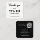 Eine minimalistisch schwarz-weiße QR-Code-Discount-Karte für ein berufliches Unternehmen, um als Werbemittel zur Kundenbindung zu nutzen. Sie können den Schriftart, die Farbe des Schriftartes, die Größe des Schriftartes, den Abstand der Buchstaben, die Hintergrundfarbe und die Farbe der Dankeschön-Grafik mit dem Design-Tool ändern. Sie können auch die Social Media Icons so ändern, dass sie für Ihr Unternehmen relevant sind. Das schlichte, moderne und elegante Design ist Ihr persönlicher Wunsch.