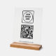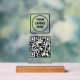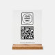 Professional acrylic sign featuring your business logo, QR code, and website link. Perfect for small businesses, stores, offices, salons, studios, and restaurants, this sleek and minimalist design allows customers to quickly scan and visit your website or connect with your brand online. Customizable with your logo and branding, ideal for counters, desktops, or store fronts, creating a modern and professional display that boosts engagement.