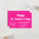 Alles Gute zum St. Patrick's Day! Ein weiterer Feiertag, um diesen März zu feiern und auch Ihr Unternehmen zu werben oder Ihren Markennamen zu fördern. Grün ist immer die Farbe für diesen Urlaub, aber versuchen Sie auch andere Farben. Rosa Farbe kleine flache Karte, die Sie anpassen können, um Ihre Marke und mit Saint Patrick Gruß. Dies kann die Farbe sein, die zu Ihrem Geschäftsfarbschema passt. Personalisieren Sie es und nutzen Sie es, um Ihre Kunden oder Kunden zu begrüßen diesen St. Patrick’s Day und als Marketing-Material, um Ihr Unternehmen zu werben oder um Ihren Markennamen zu fördern. Sie können es auch als Zubehör für Verpackungsmaterial Ihres Produkts verwenden. Anpassbare Karte, mit der Sie Markenbewusstsein schaffen können. Um diese Karte anzupassen, laden Sie Ihr Firmenlogo hoch, geben Sie Ihren Firmennamen, Ihre Adresse, Telefonnummer, E-Mail und Website oder Ihre Social-Media-Webseite ein. Bitte Karo nach dem Hochladen von Logos und Schriftzeichen auf der Vorder- und Rückseite. Wenn Ihnen das Aussehen gefällt, können Sie jetzt Ihre Bestellung aufgeben. Wenn Sie das Logo und die Texte ändern und verschieben müssen, um auf diese Karte oder auf die Größe, die Sie wählen möchten, passen Sie bitte das Design-Tool an. Sie können auch die Hintergrundfarbe, die Farbe des Schriftartes und den Stil des Schriftartes im Designwerkzeug ändern. Wir wünschen Ihnen viel Glück, Freude und mehr Umsatz in diesem Urlaub.