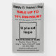 Alles Gute zum St. Patrick's Day! Ein weiterer Feiertag, um diesen März zu feiern und auch Ihr Unternehmen zu werben oder Ihren Markennamen zu fördern. Grün ist immer die Farbe für diesen Urlaub, aber versuchen Sie auch andere Farben. Maßgeschneidertes graues Banner mit Saint Patrick Sale, Ihrem Firmennamen und anderen Informationen. Dies kann die Farbe sein, die zu Ihrem Geschäftsfarbschema passt. Banner, die Sie als Marketing-Material verwenden können, um mehr Kunden zu gewinnen. Anpassen und anzeigen, um mehr Kunden davon zu überzeugen, Ihre Produkte oder Kunden zu kaufen, um Ihre Dienstleistungen zu mögen. Inhalte sind Happy Saint Patrick's Day Gruß, Verkaufstexte mit Prozent Rabatt, die Sie anbieten, Verkaufstermine, Ihr Firmenname, Logo, Adresse, Telefonnummer, E-Mail und Website oder Ihre Business Social Media-Seite. Bitte Karo des Erscheinungsbildes nach dem Hochladen von Logos und Schriftzeichen. Wenn Ihnen das Aussehen gefällt, können Sie jetzt Ihre Bestellung aufgeben. Wenn Sie das Logo und die Texte ändern und verschieben müssen, um auf dieses Banner oder auf die gewünschte Größe zu passen, ändern Sie bitte das Design-Tool. Sie können auch die Hintergrundfarbe, die Farbe des Schriftartes und den Stil des Schriftartes im Designwerkzeug ändern. Wir wünschen Ihnen viel Glück, Freude und mehr Umsatz in diesem Urlaub.