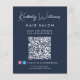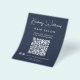 Chic promotional blue flyer for your business featuring your name in a stylish white signature script and business type below in simple modern white lettering. Input your website address to create a QR code for customers and clients to scan for appointments, products, services, hours, etc. Add your instagram and facebook handle for customers to follow you on social media.
