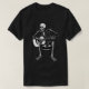 Sitzgelegter Skelettgitarrist. B/W, Original Stift & Tinte zeichnend, auf T - Shirt, Schweiß, Karten, Geschenkartikel.