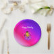 Eine süße, geschäftige Honigbiene mit violetten Blumen auf einem farbenfrohen rosa und lila Hintergrund. Die Worte "Geburtstag glücklich" können geändert oder entfernt werden. Andere passende Party-Elemente finden Sie in diesem Design.
