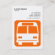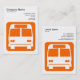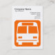 Eine Visitenkartenvorlage mit einem fett gedruckten Bussymbol oder -zeichen. Firmenname, Geschäftstyp und Adresse auf der Vorderseite mit Namen, Jobtitel, Telefonie, Web- und E-Mail-Adressen auf der Rückseite, mit dem gleichen Layout.